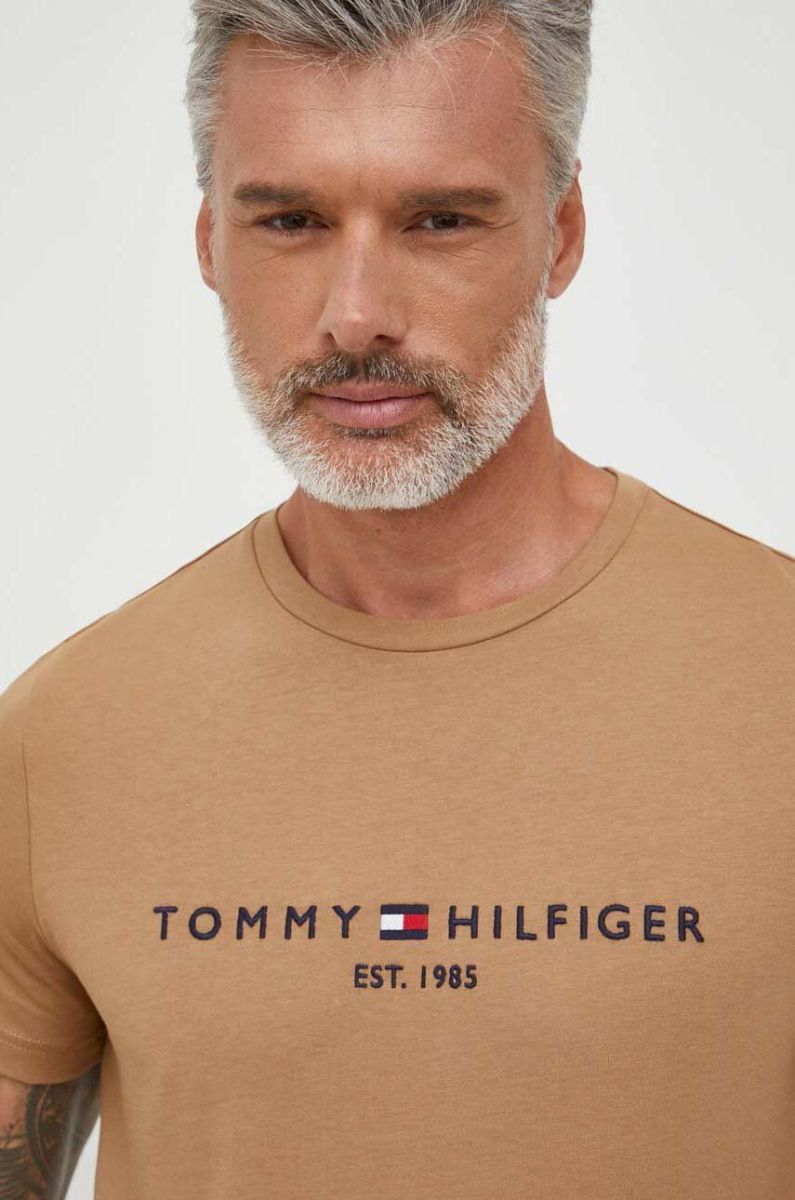 Бавовняна футболка Tommy Hilfiger колір коричневий з аплікацією