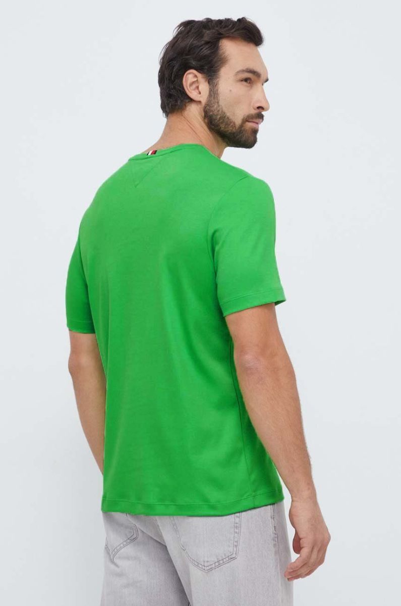Бавовняна футболка Tommy Hilfiger колір зелений однотонний