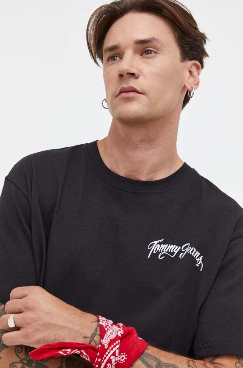 Бавовняна футболка Tommy Jeans чоловічий колір чорний з принтом (3633689)