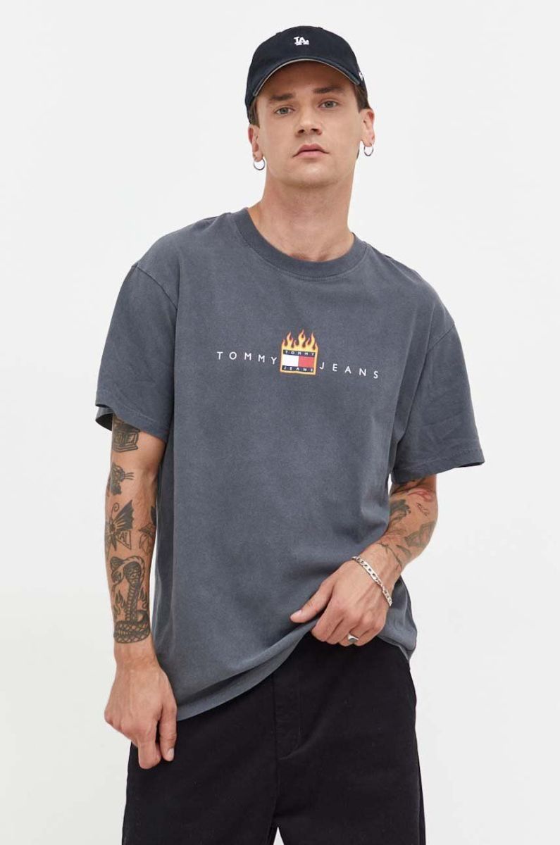 Бавовняна футболка Tommy Jeans чоловічий колір сірий з принтом (3633704)