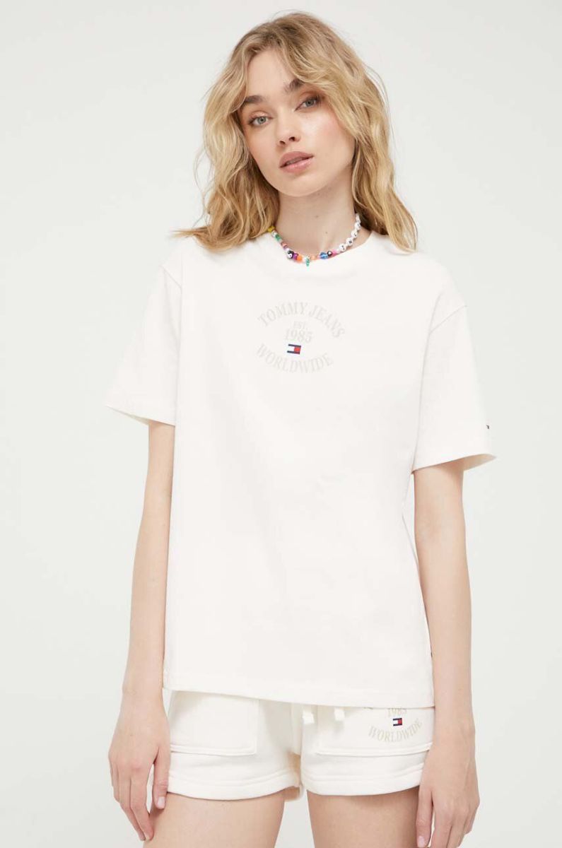 Бавовняна футболка Tommy Jeans колір бежевий (3276791)