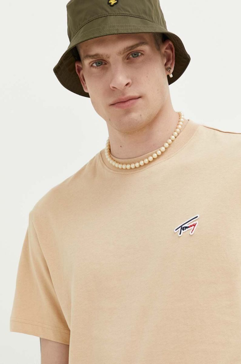 Бавовняна футболка Tommy Jeans колір бежевий однотонний (3246976)