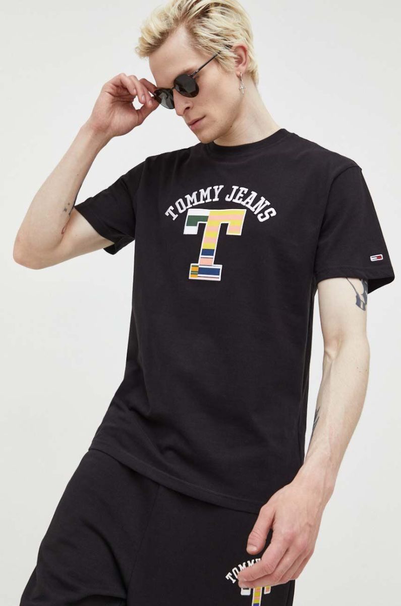 Бавовняна футболка Tommy Jeans колір чорний з аплікацією (3284483)