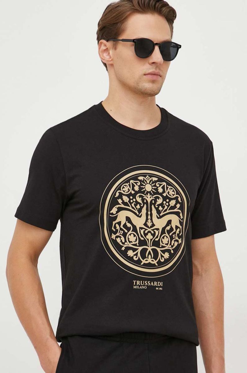 Бавовняна футболка Trussardi чоловічий колір чорний з принтом