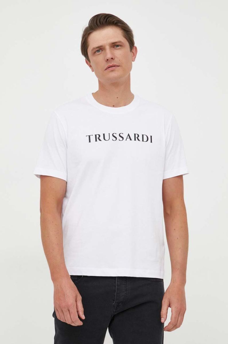 Бавовняна футболка Trussardi колір білий з принтом (3370678)