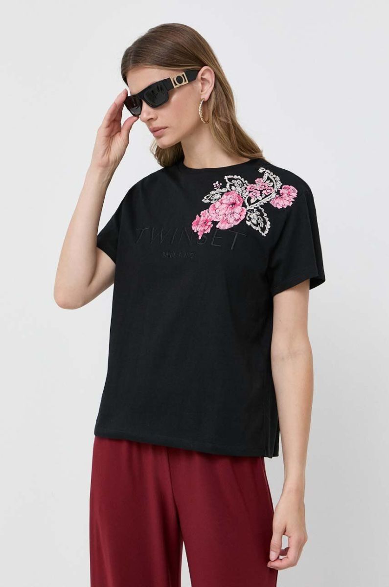 Бавовняна футболка Twinset колір чорний (3478328)