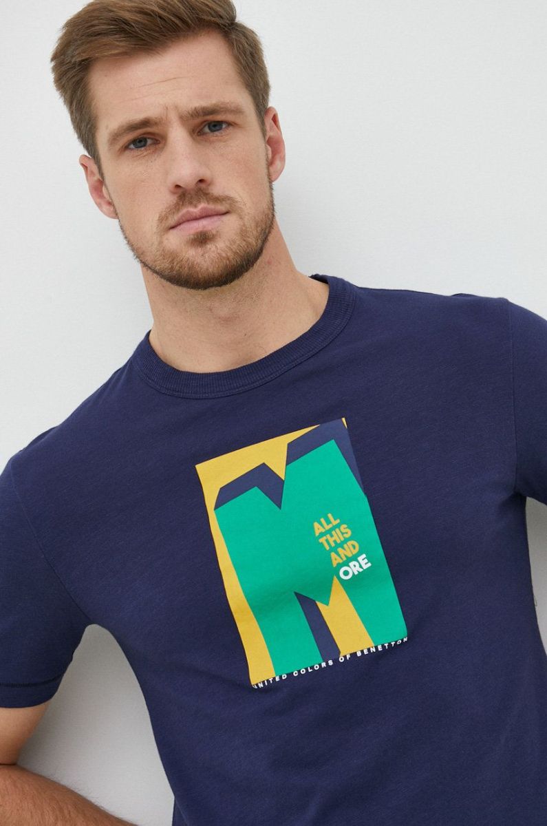 Бавовняна футболка United Colors of Benetton колір синій з принтом (2822026)