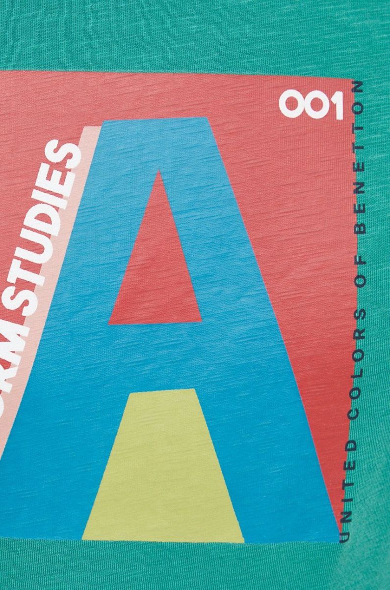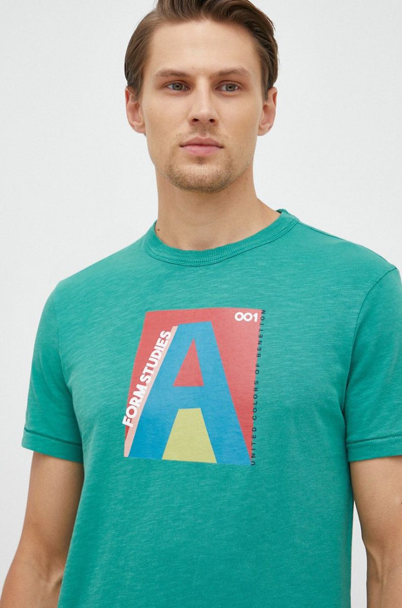 Бавовняна футболка United Colors of Benetton колір зелений з принтом (2841472)
