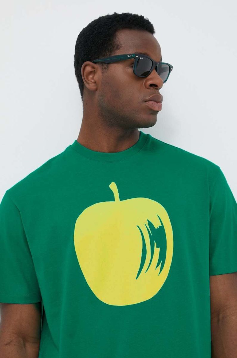 Бавовняна футболка United Colors of Benetton колір зелений з принтом (3311241)