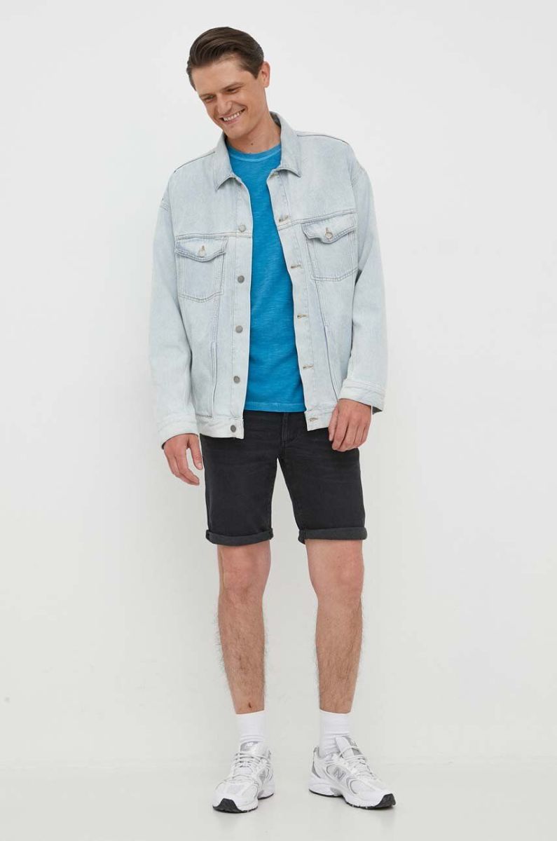 Бавовняна футболка United Colors of Benetton меланж колір блакитний