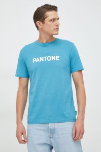 Бавовняна футболка United Colors of Benetton з принтом колір блакитний (2762855)