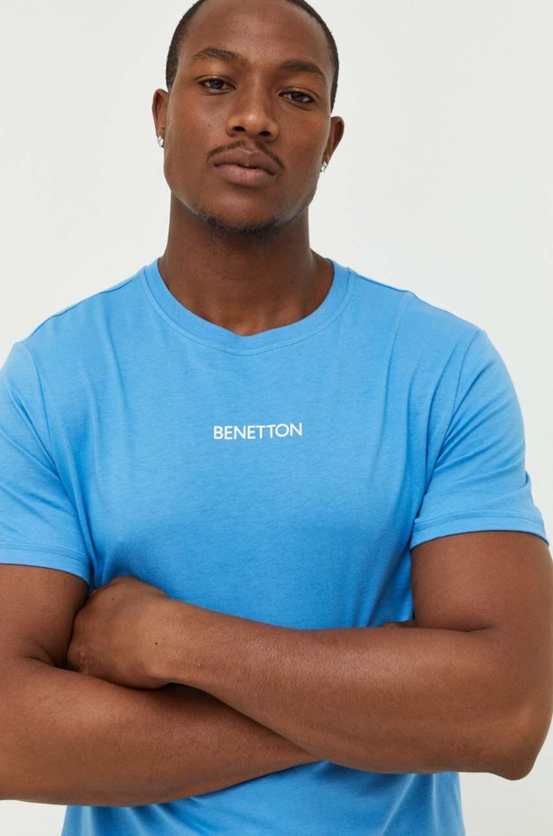 Бавовняна футболка United Colors of Benetton з принтом колір блакитний (3422418)