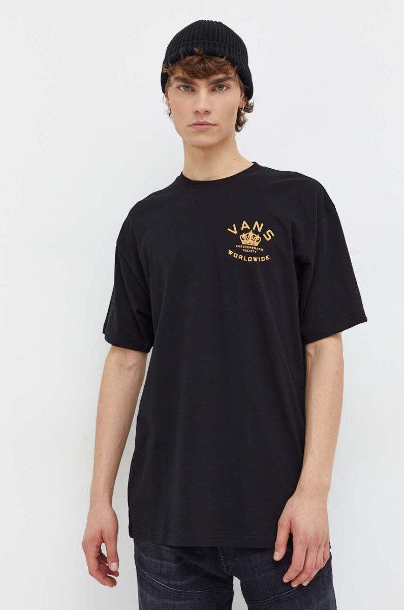Бавовняна футболка Vans чоловічий колір чорний з принтом (3687206)