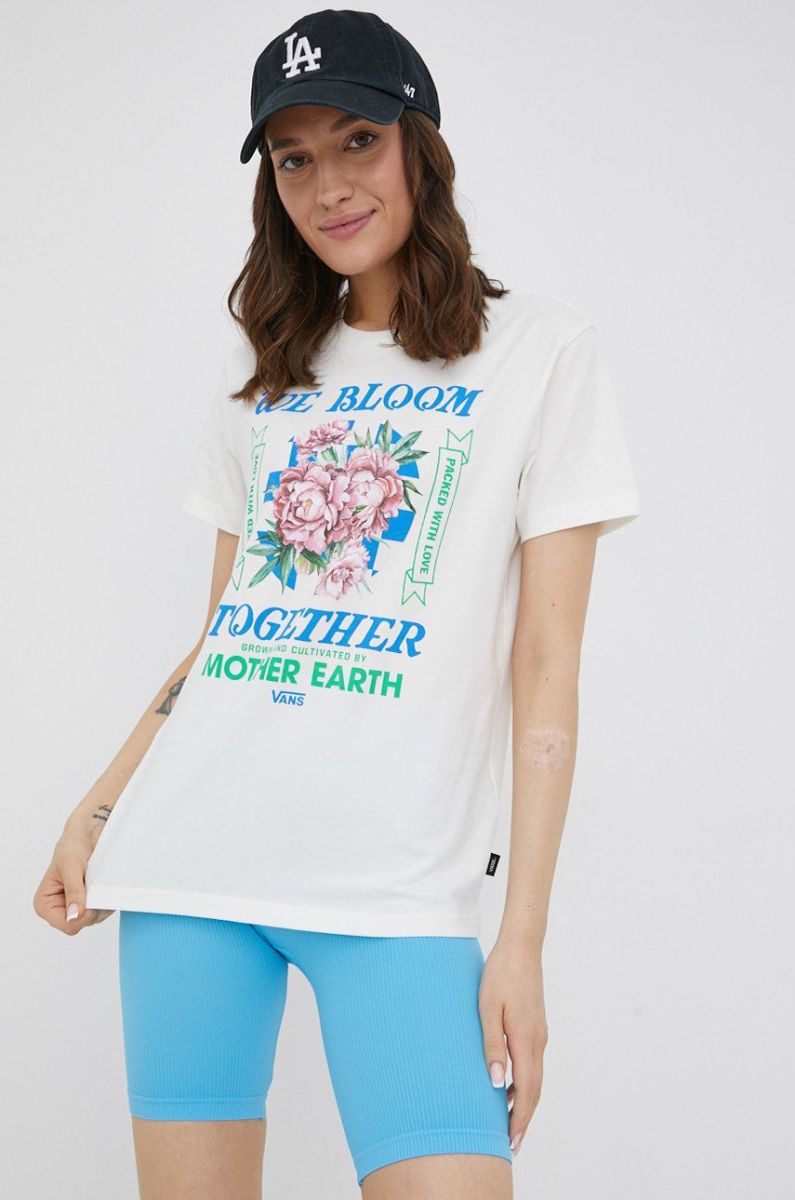 Бавовняна футболка Vans колір бежевий (2277941)