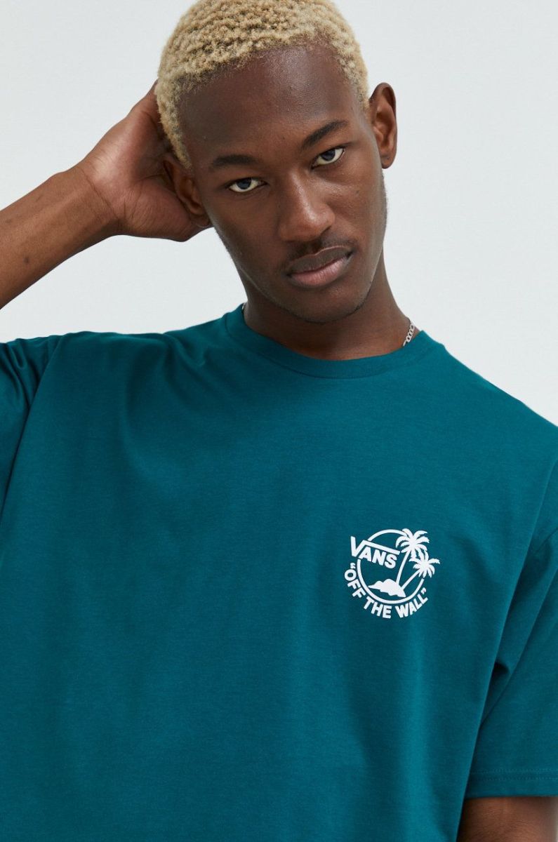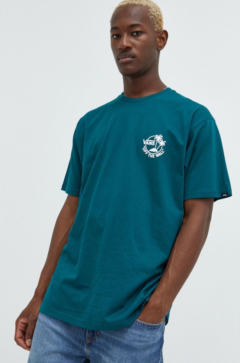 Бавовняна футболка Vans колір зелений з принтом (2473586)