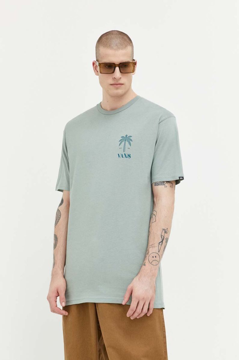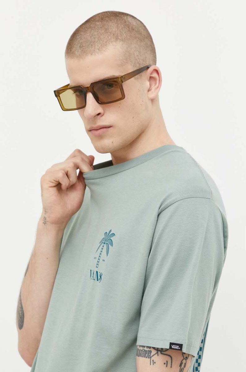 Бавовняна футболка Vans колір зелений з принтом (3212419)