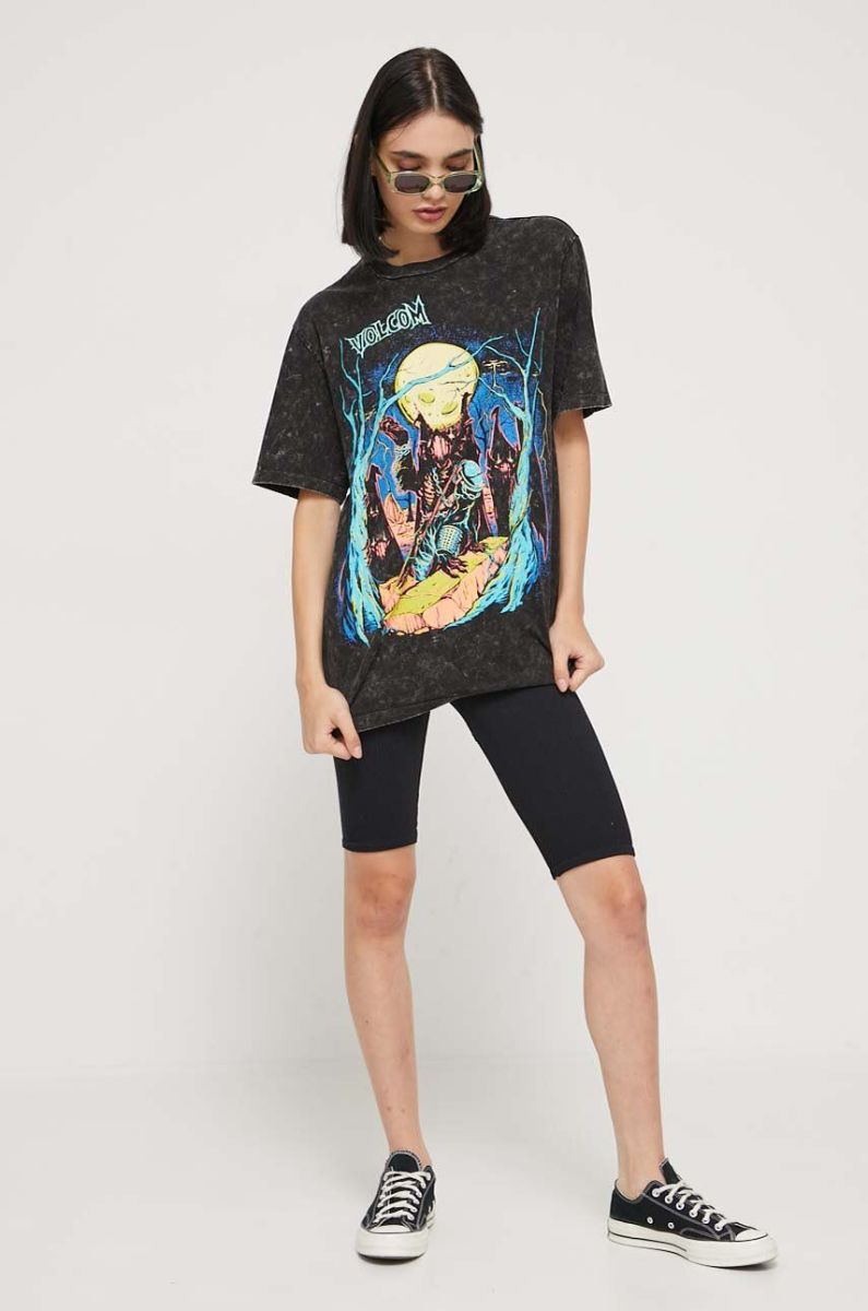 Бавовняна футболка Volcom x MAX SHERMAN жіноча колір чорний