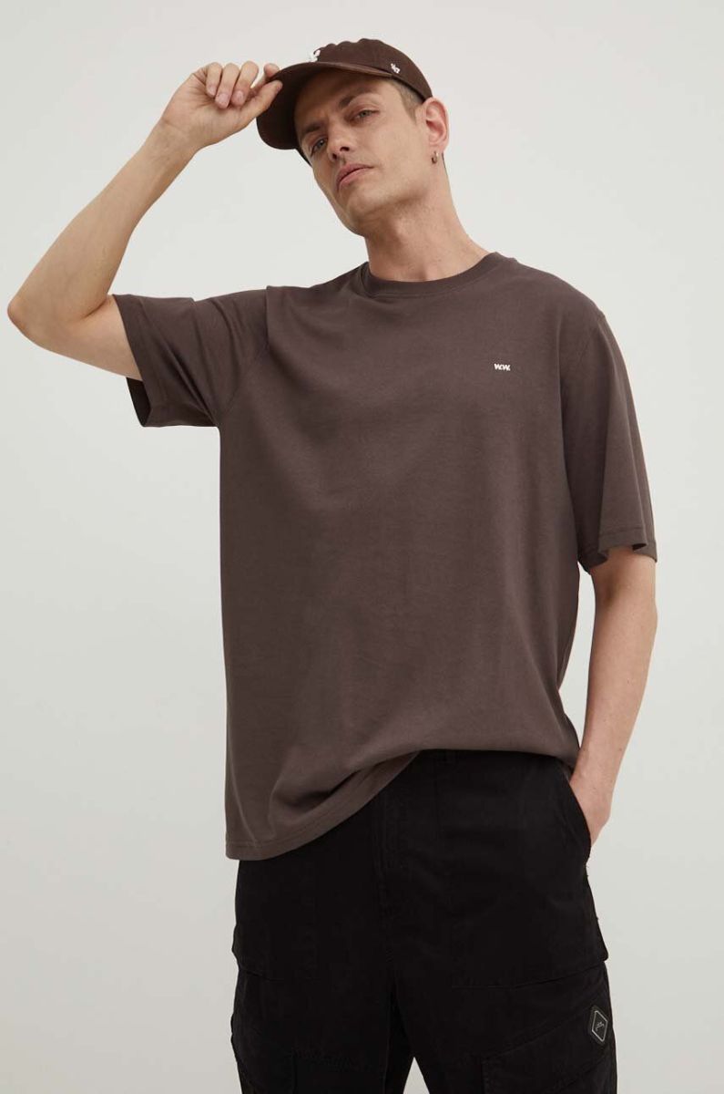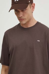 Бавовняна футболка Wood Wood колір коричневий однотонний