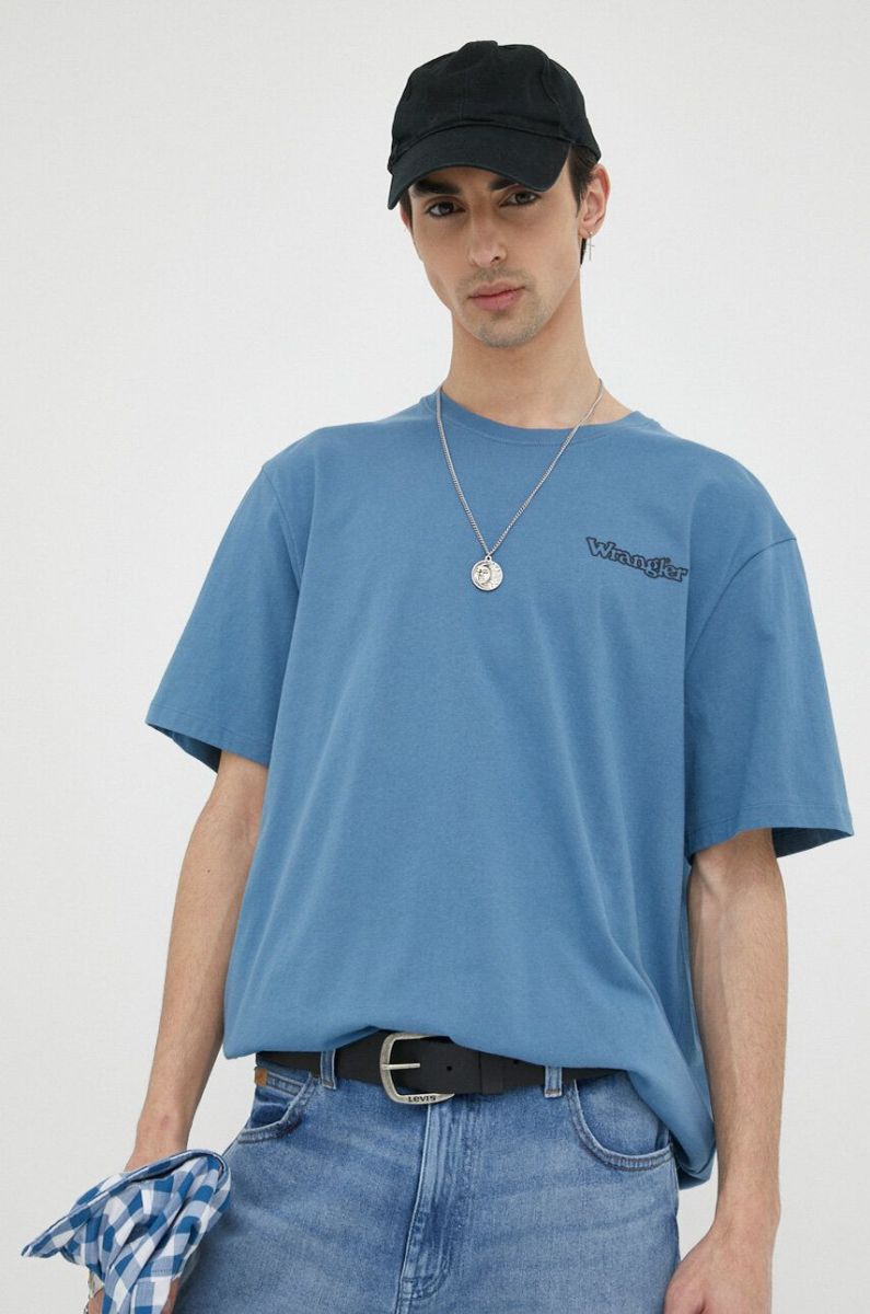Бавовняна футболка Wrangler з принтом колір блакитний (3172039)