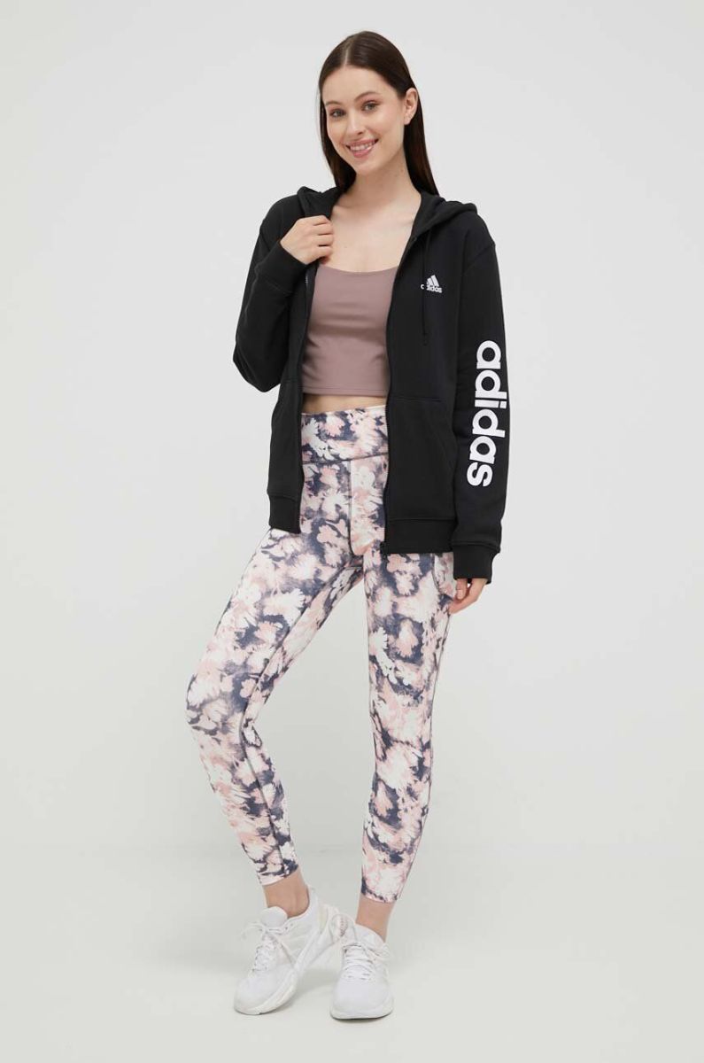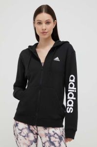 Бавовняна кофта adidas жіноча колір чорний з капюшоном з принтом (3288514)