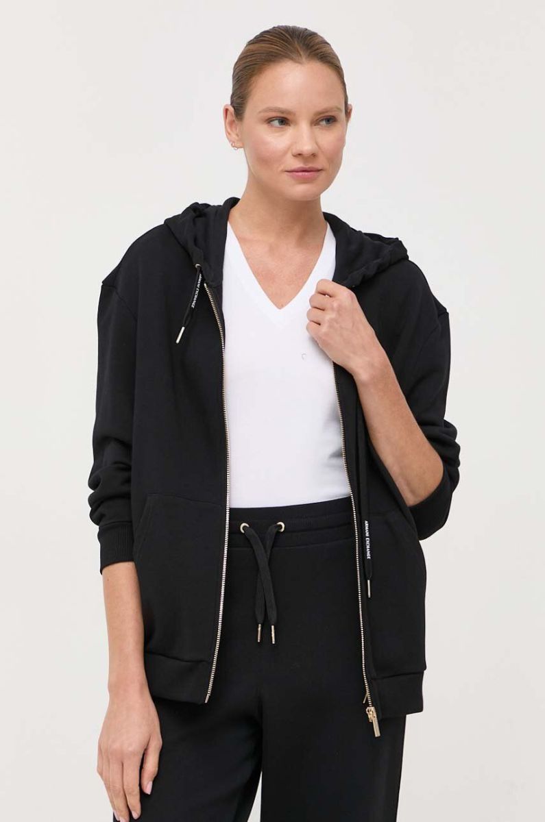 Бавовняна кофта Armani Exchange жіноча колір чорний з капюшоном однотонна