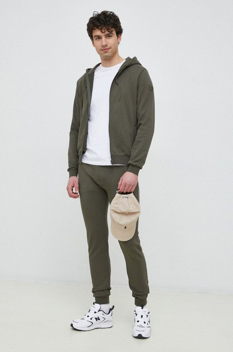 Бавовняна кофта Colmar чоловіча колір зелений з капюшоном однотонна