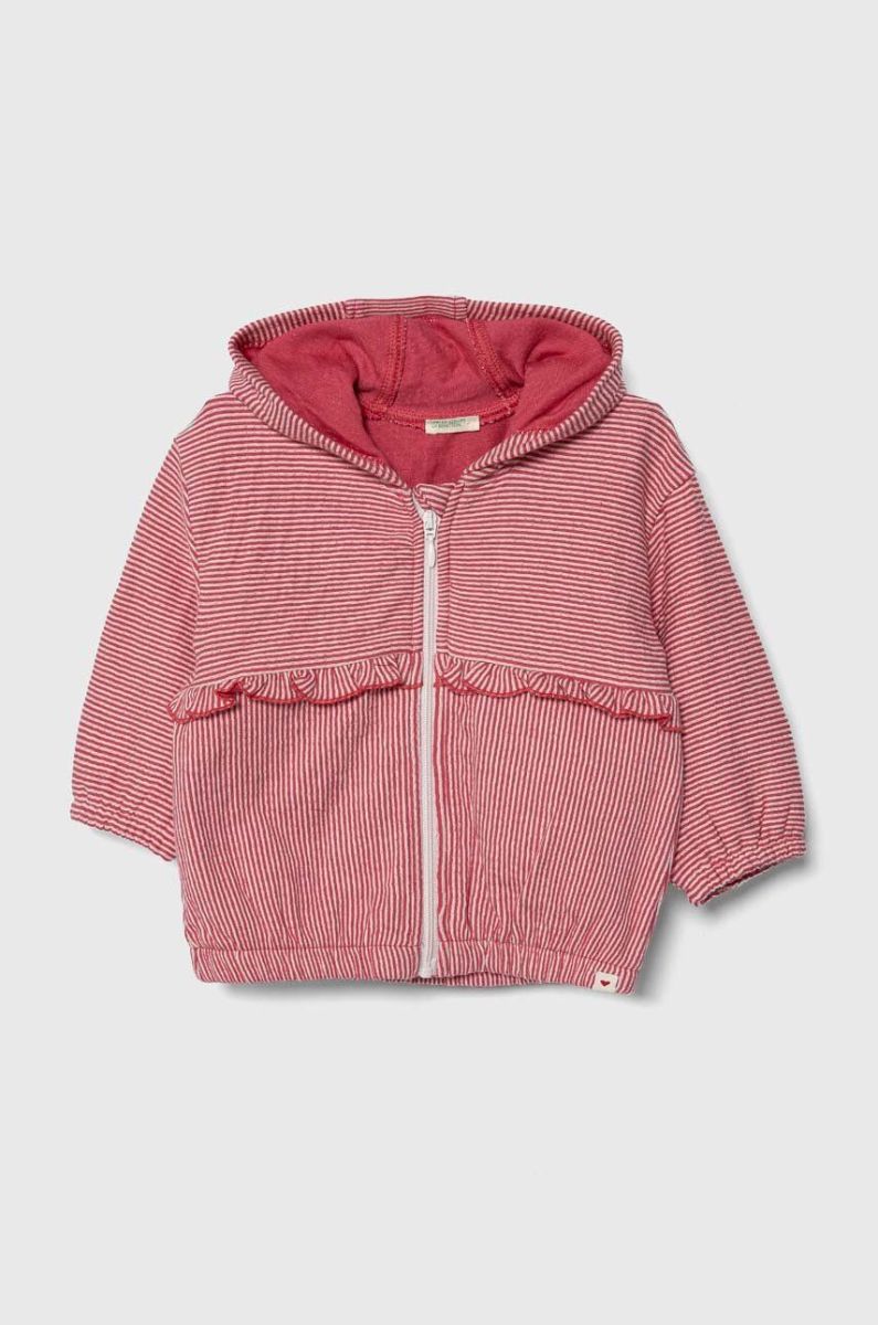 Бавовняна кофта для немовлят United Colors of Benetton колір рожевий з капюшоном візерунок