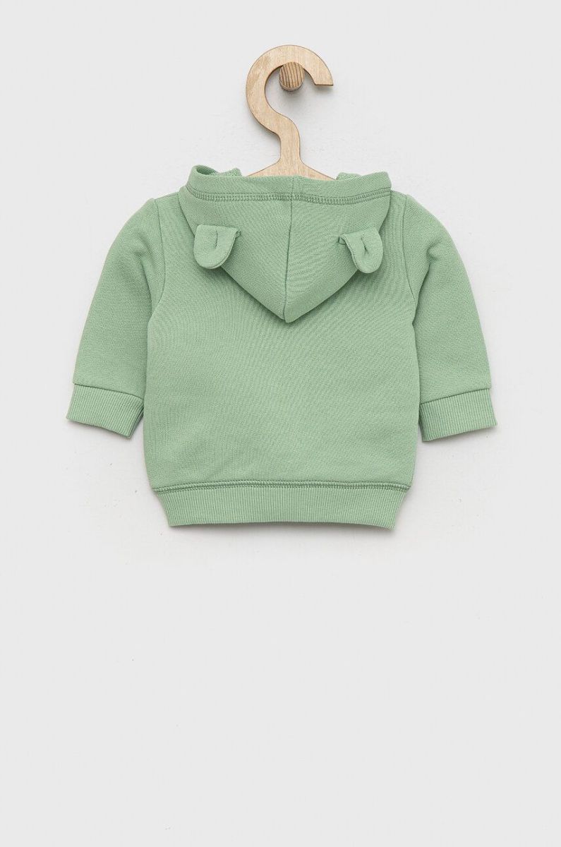 Бавовняна кофта для немовлят United Colors of Benetton колір зелений з капюшоном однотонна