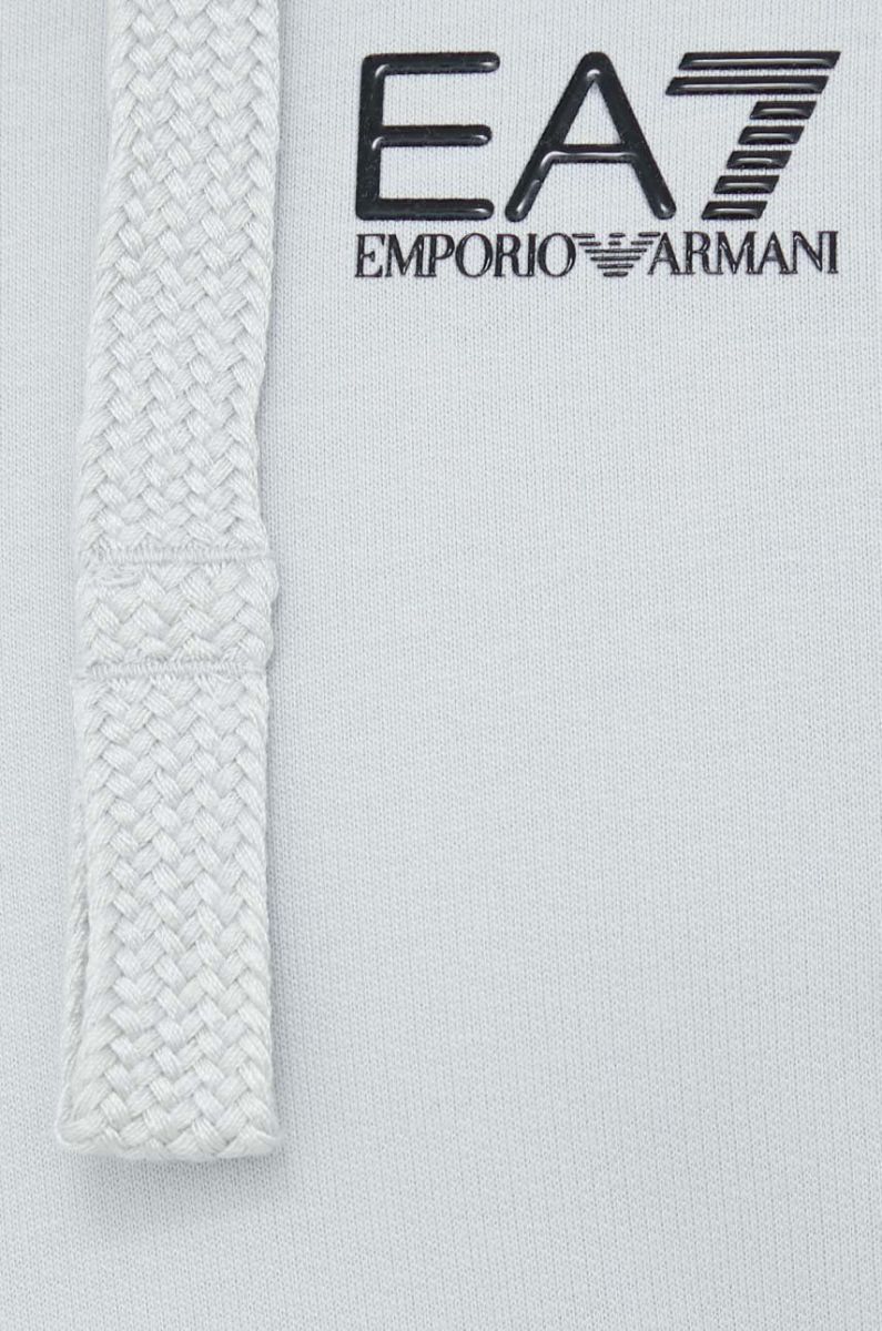 Бавовняна кофта EA7 Emporio Armani чоловіча колір чорний з капюшоном однотонна