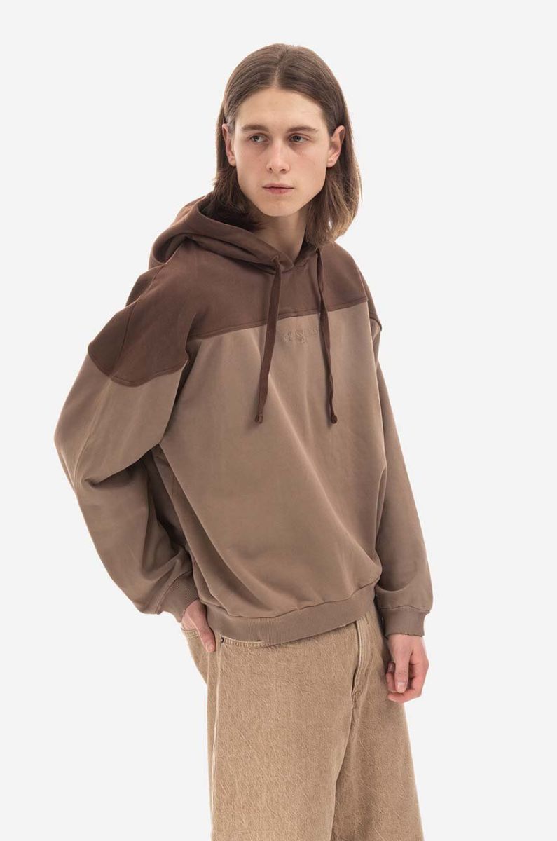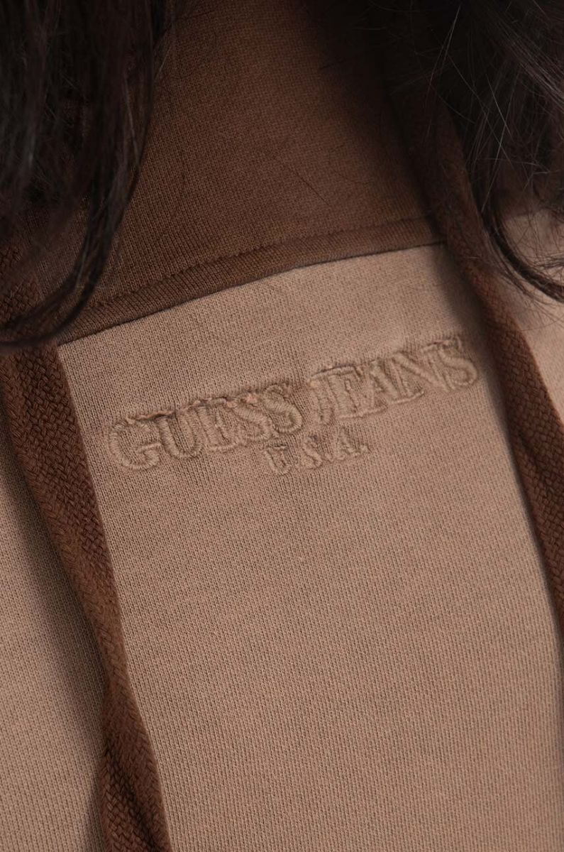 Бавовняна кофта Guess чоловіча колір коричневий з капюшоном візерунок Bluza GUESS USA Two Tone Hoodie M2BQ02KBB40 A119 M2BQ02.KBB40-A119