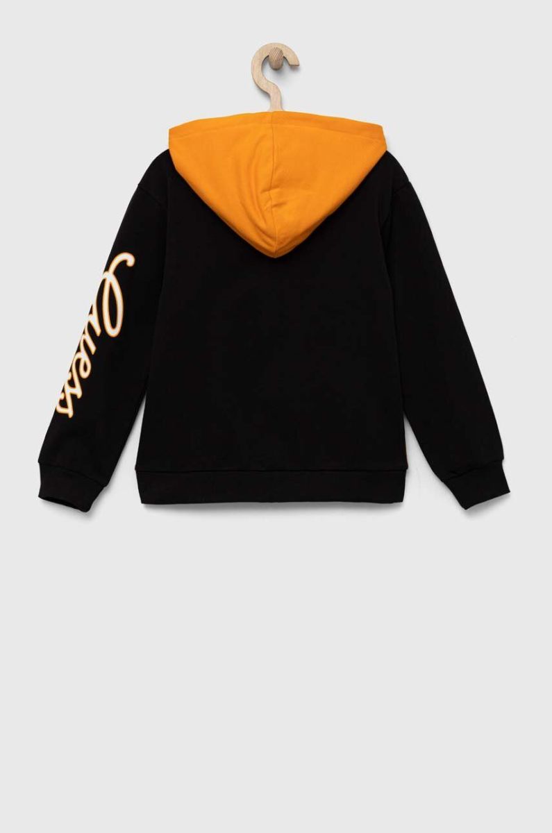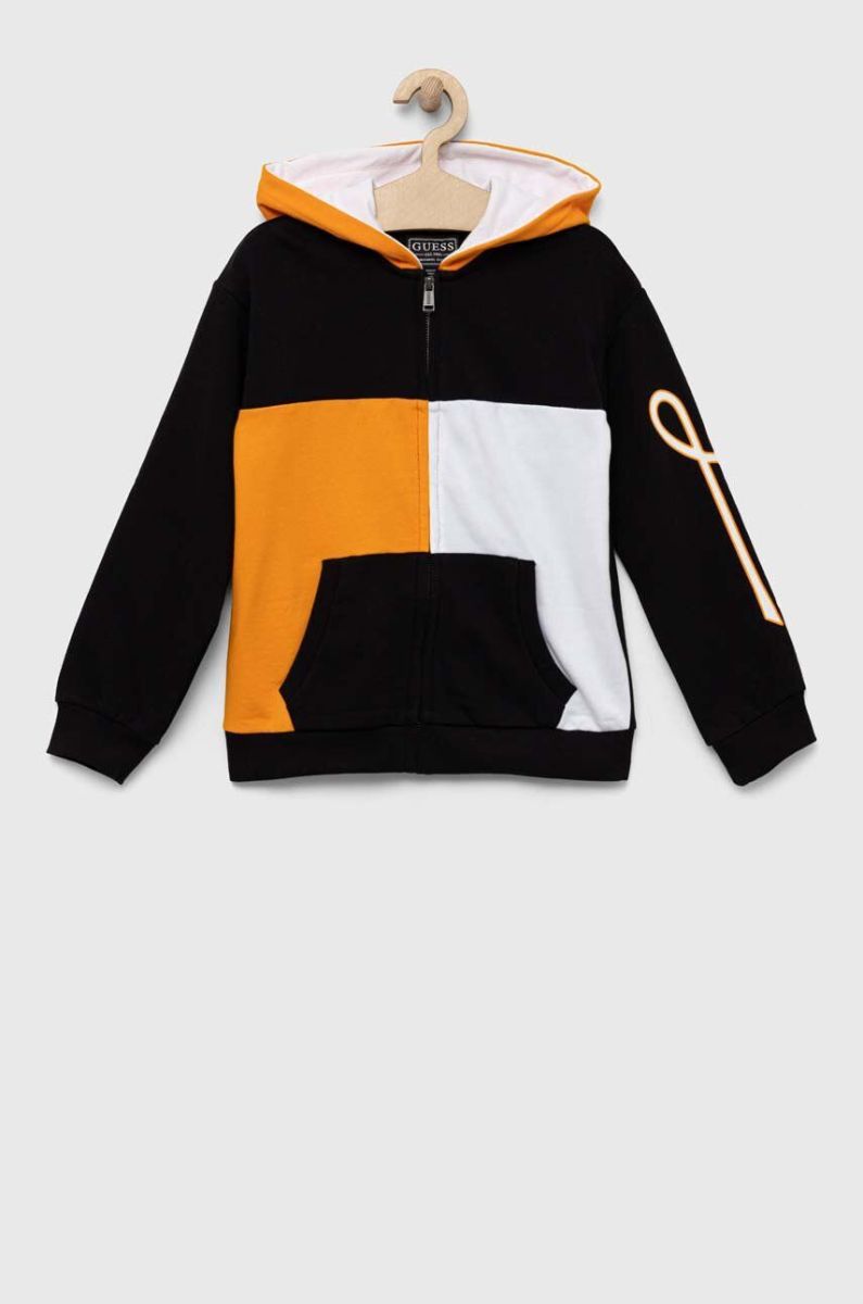 Бавовняна кофта Guess колір чорний з капюшоном візерунок