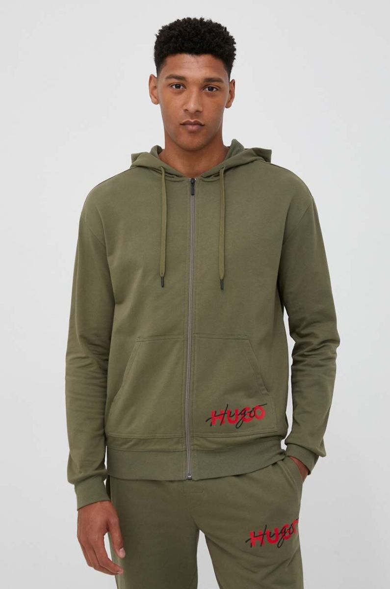 Бавовняна кофта HUGO чоловіча колір зелений з капюшоном з принтом (3383226)