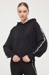 Бавовняна кофта HUGO жіноча колір чорний з капюшоном з принтом