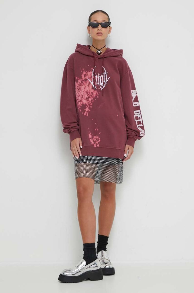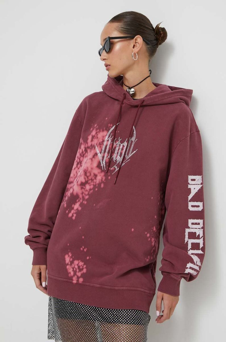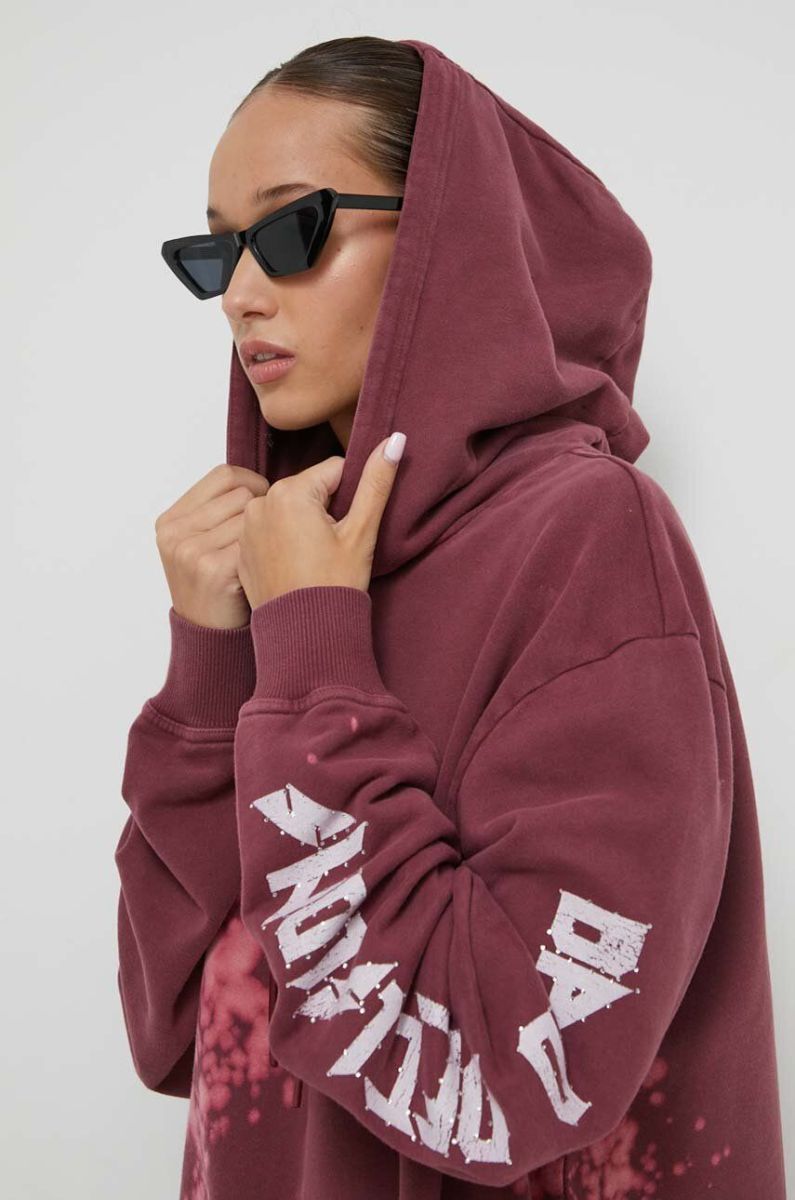 Бавовняна кофта HUGO жіноча колір рожевий з капюшоном візерунок (3617249)