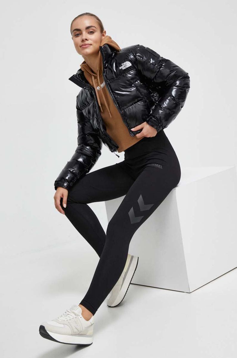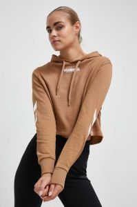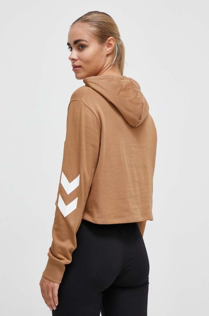 Бавовняна кофта Hummel жіноча колір коричневий з капюшоном з принтом