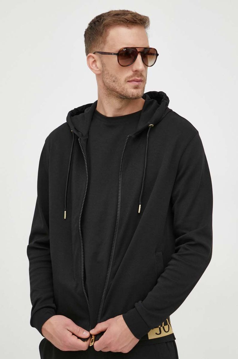 Бавовняна кофта Joop! чоловіча колір чорний з капюшоном з принтом (3386546)