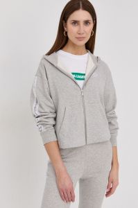 Бавовняна кофта Karl Lagerfeld жіноча колір сірий з капюшоном з аплікацією
