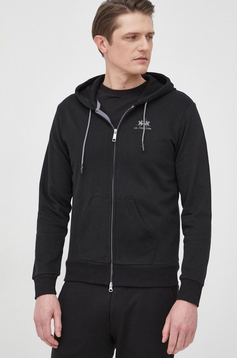 Бавовняна кофта La Martina чоловіча колір чорний однотонна (2176884)