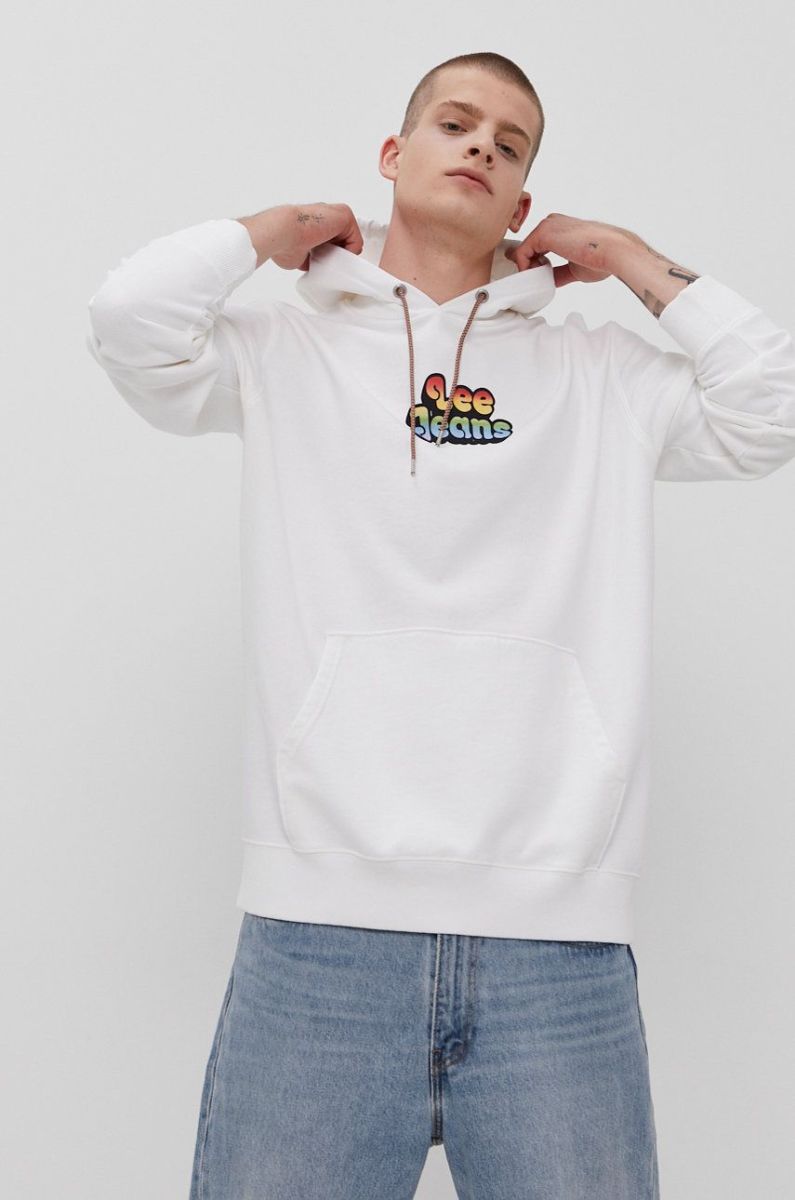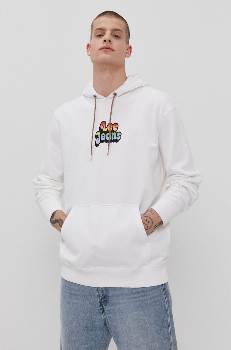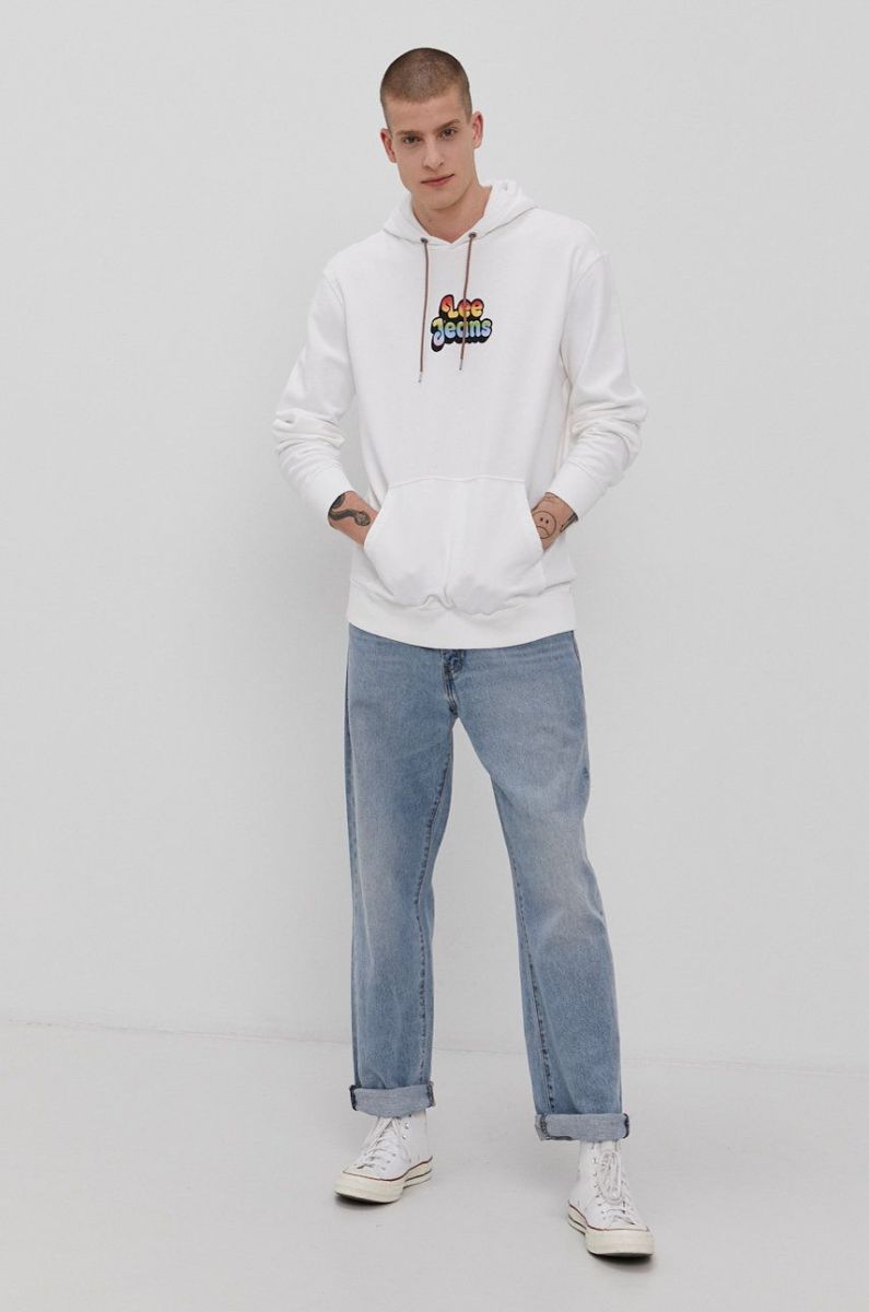 Бавовняна кофта Lee чоловіча колір білий з принтом