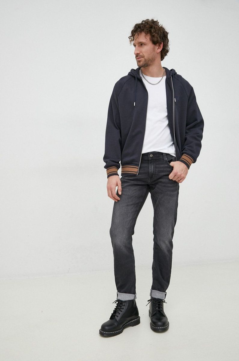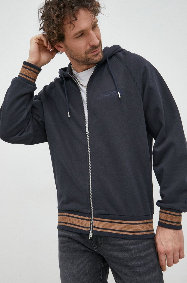 Бавовняна кофта Marc O'Polo чоловіча колір синій з капюшоном візерунок