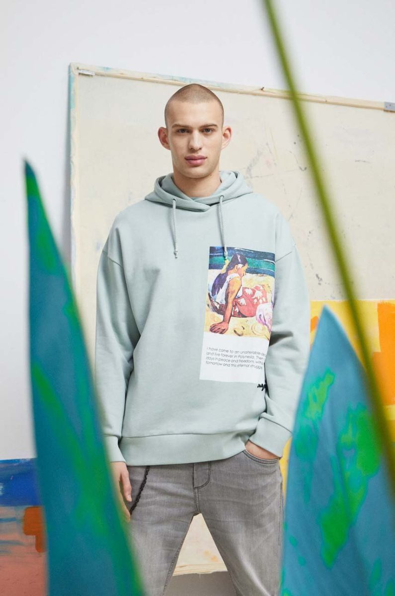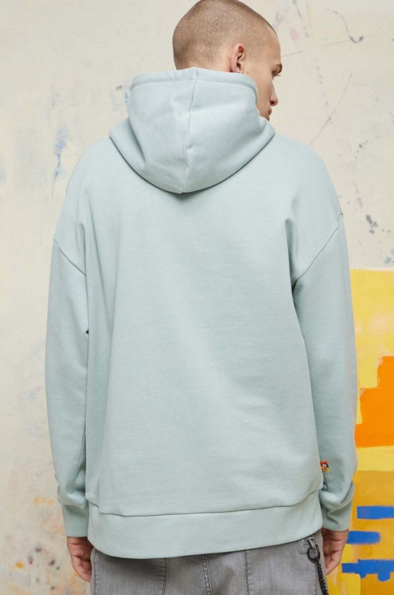 Бавовняна кофта Medicine чоловіча колір бірюзовий з капюшоном з принтом