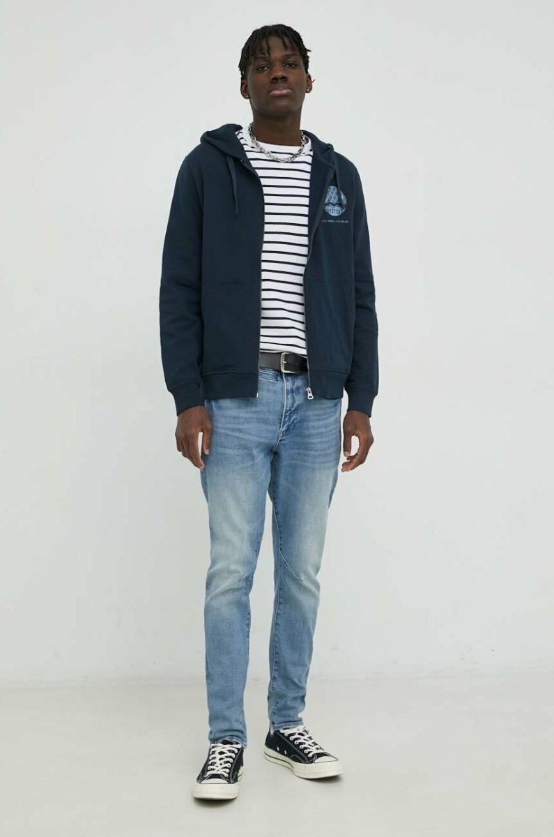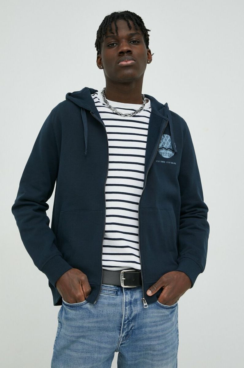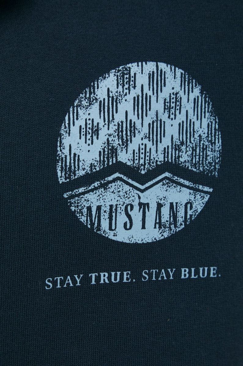 Бавовняна кофта Mustang чоловіча колір синій з капюшоном з принтом (3063945)