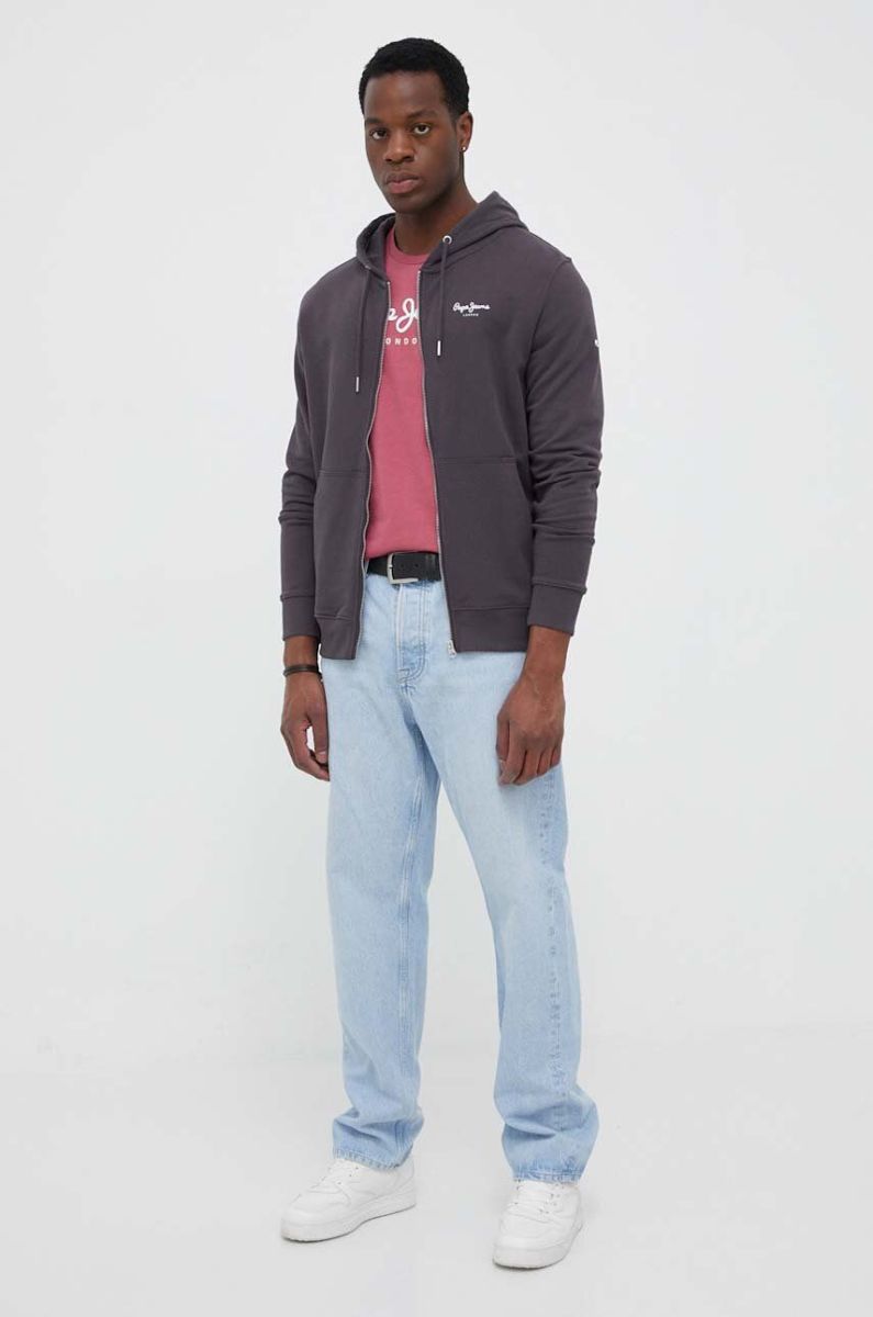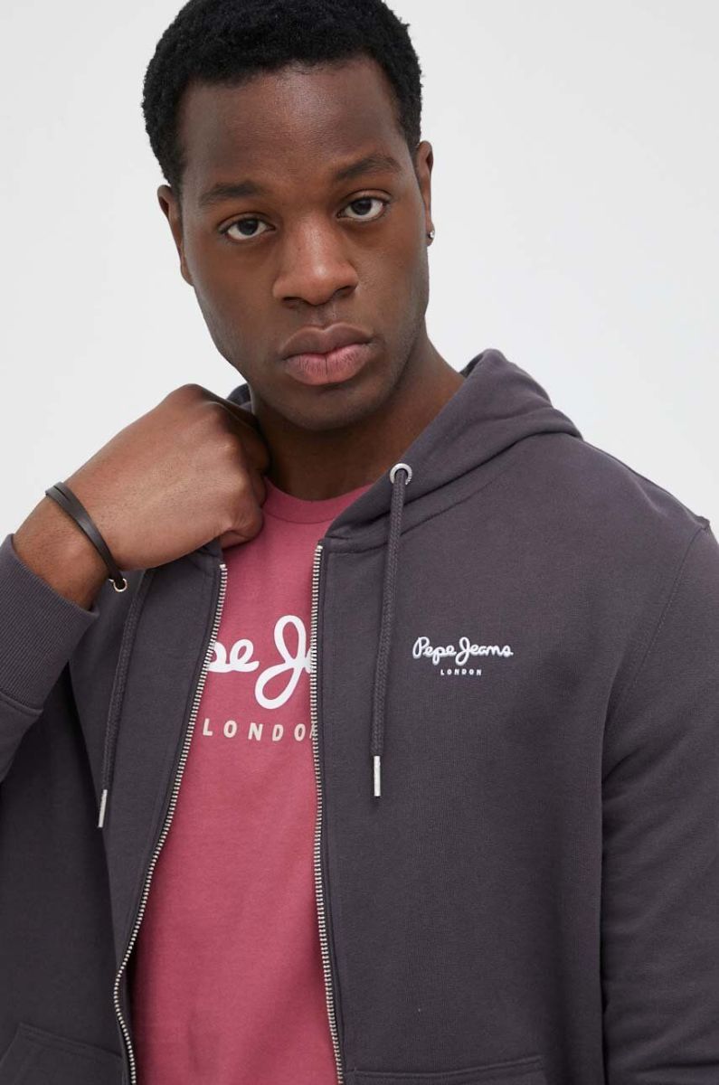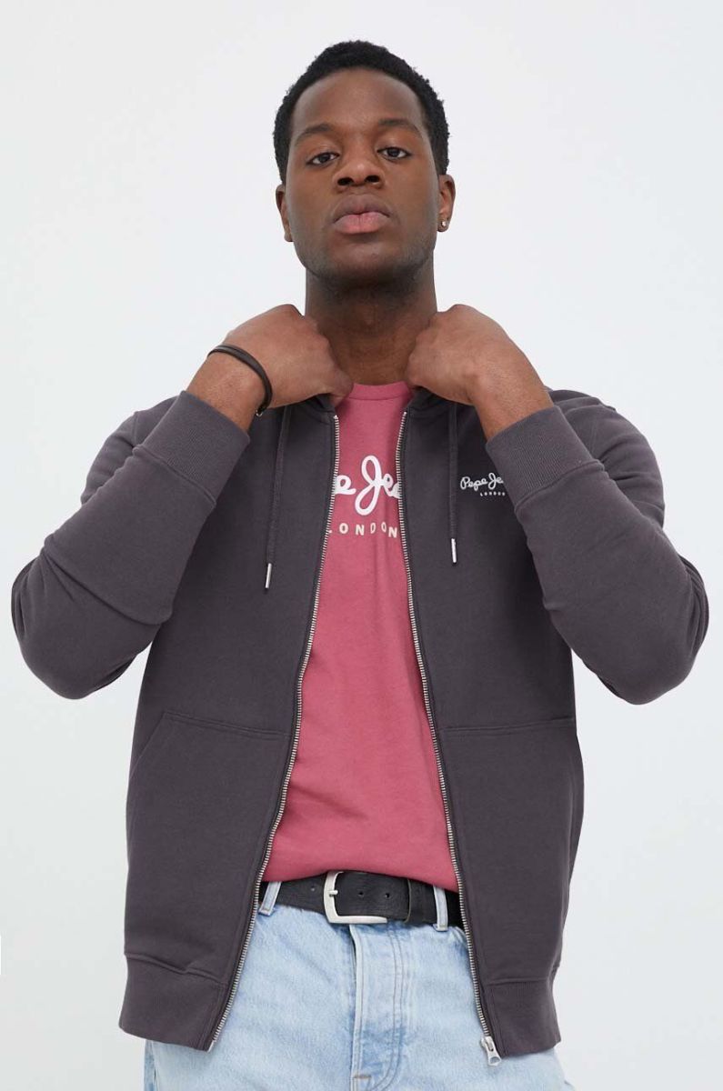 Бавовняна кофта Pepe Jeans чоловіча колір сірий з капюшоном з принтом