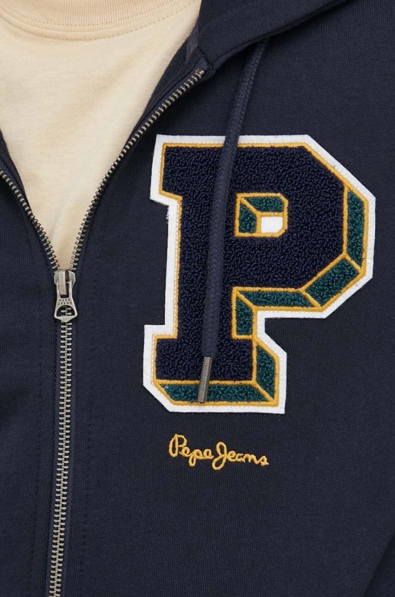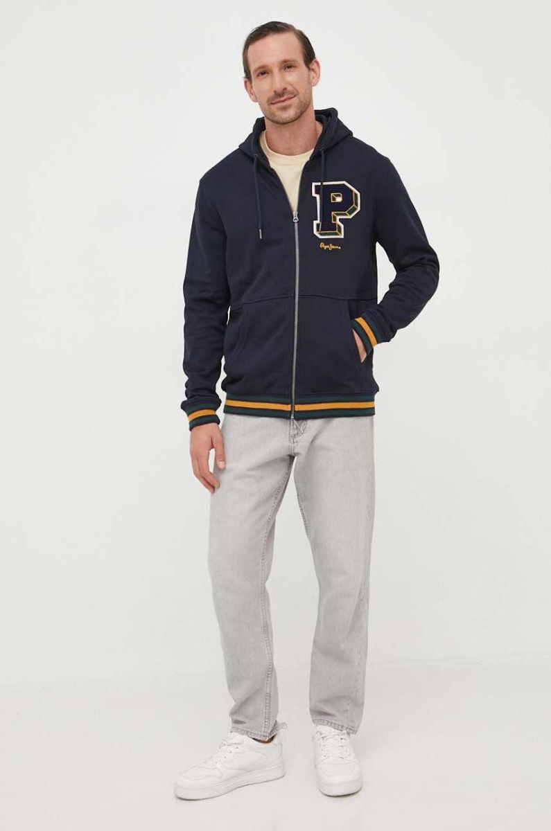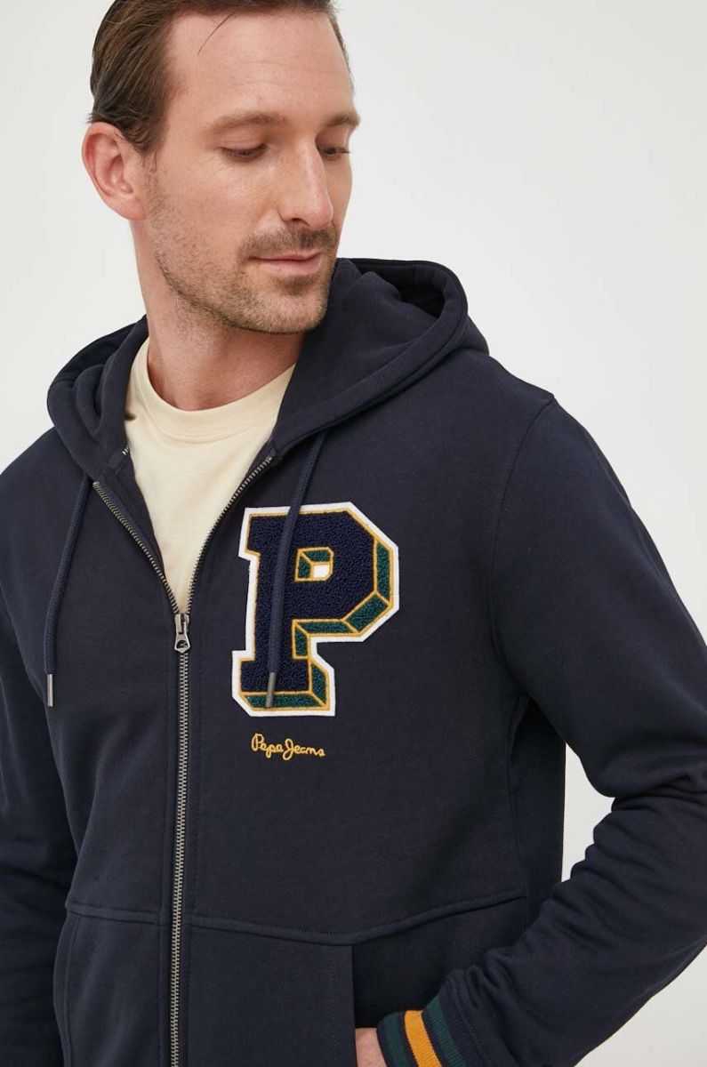 Бавовняна кофта Pepe Jeans Michon чоловіча колір синій з капюшоном з аплікацією