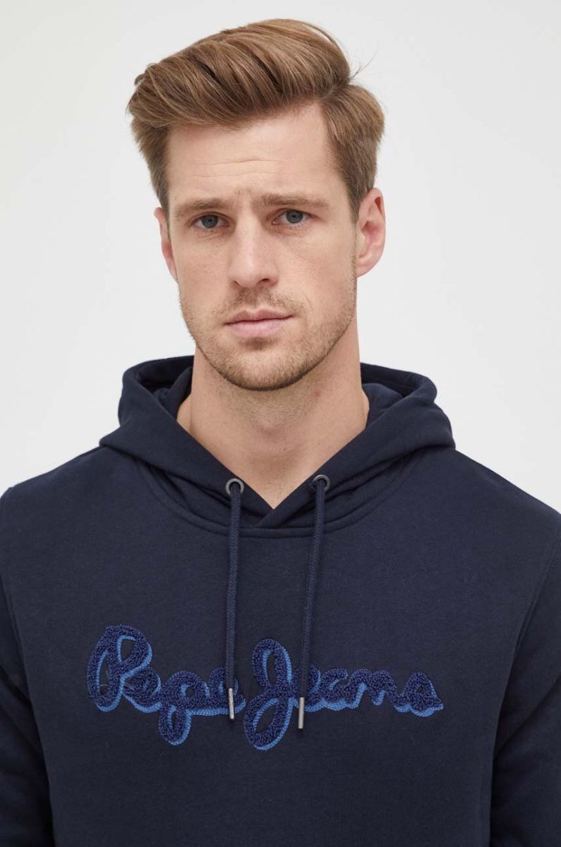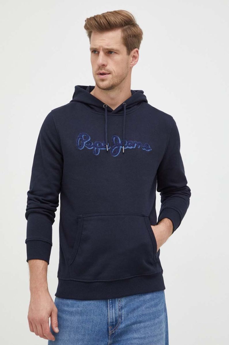 Бавовняна кофта Pepe Jeans RYAN чоловіча колір синій з капюшоном з аплікацією