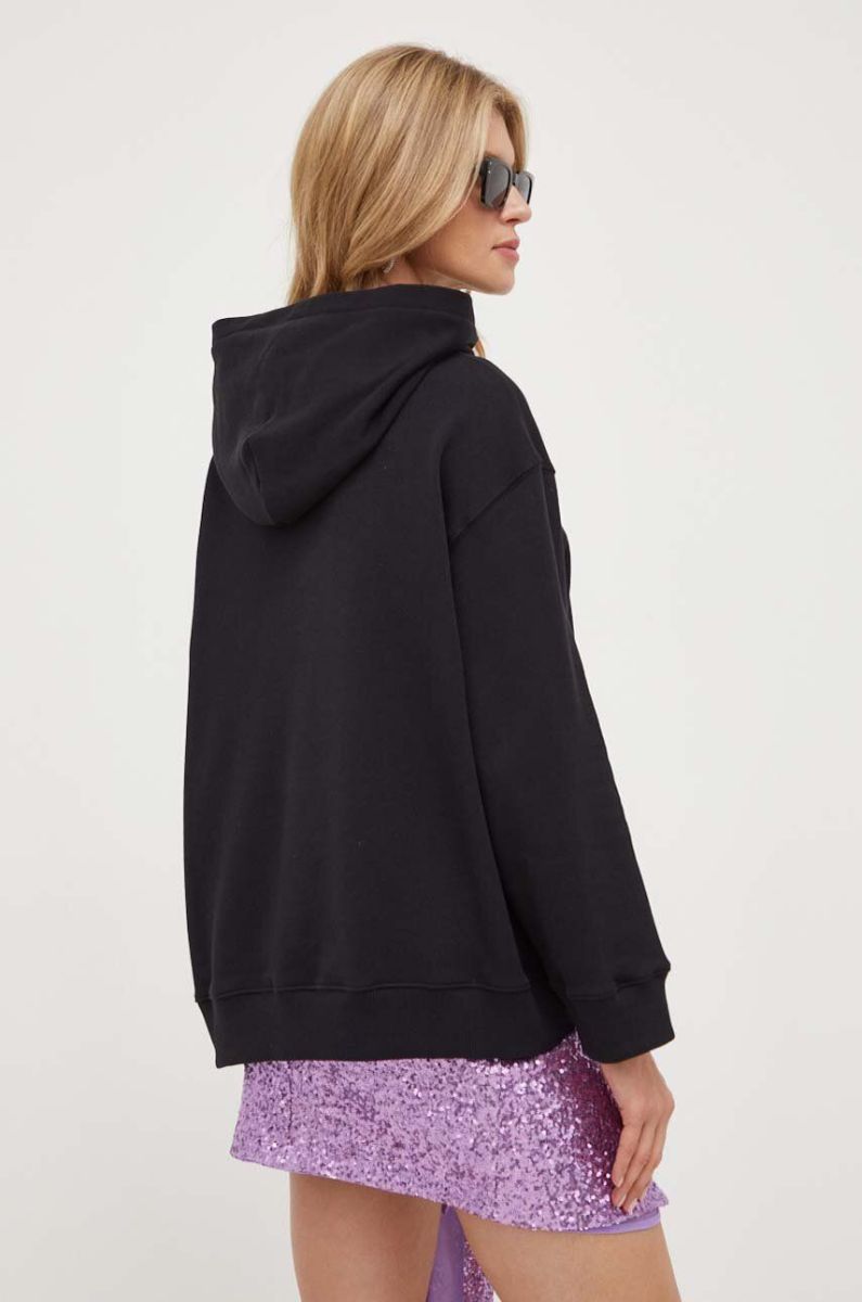 Бавовняна кофта Pinko жіноча колір чорний з капюшоном з принтом (3441427)
