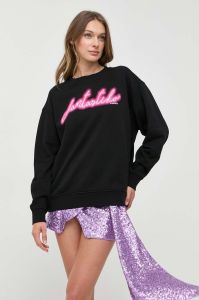 Бавовняна кофта Pinko жіноча колір чорний з капюшоном з принтом (3441528)