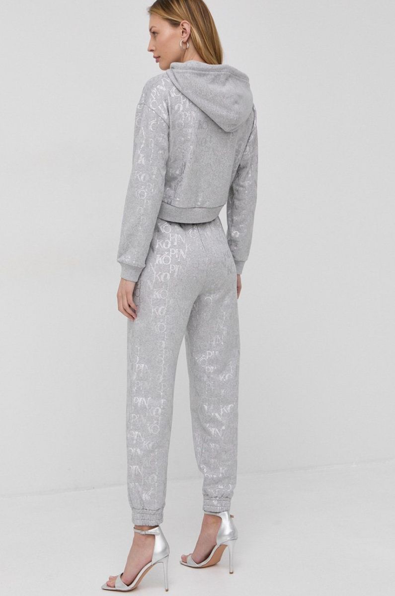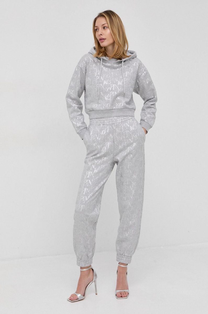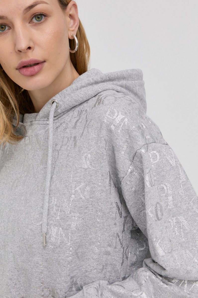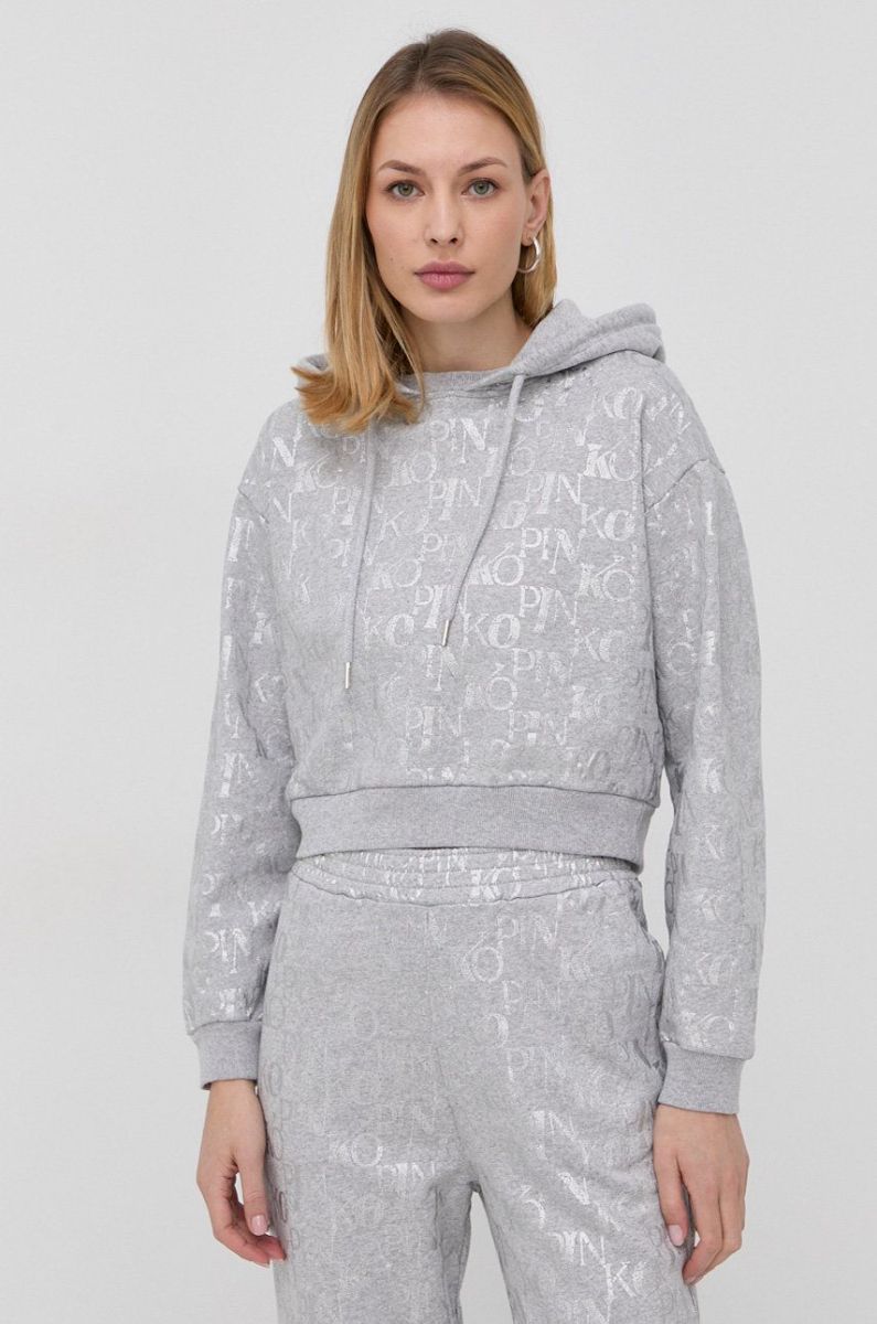 Бавовняна кофта Pinko жіноча колір сірий з капюшоном меланж