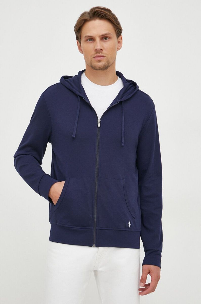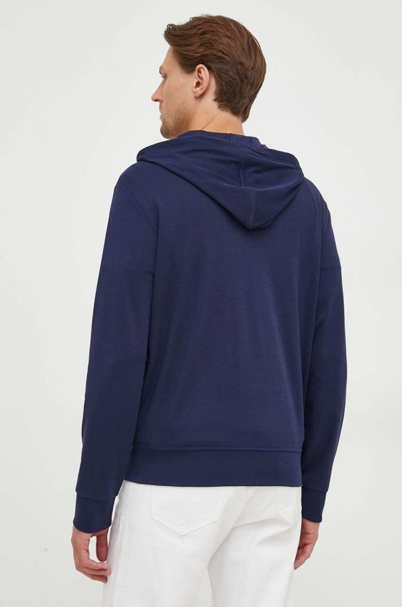 Бавовняна кофта Polo Ralph Lauren чоловіча колір синій з капюшоном однотонна
