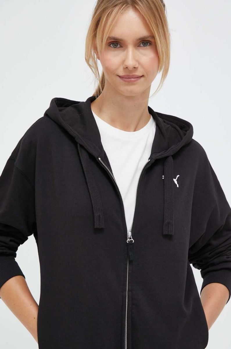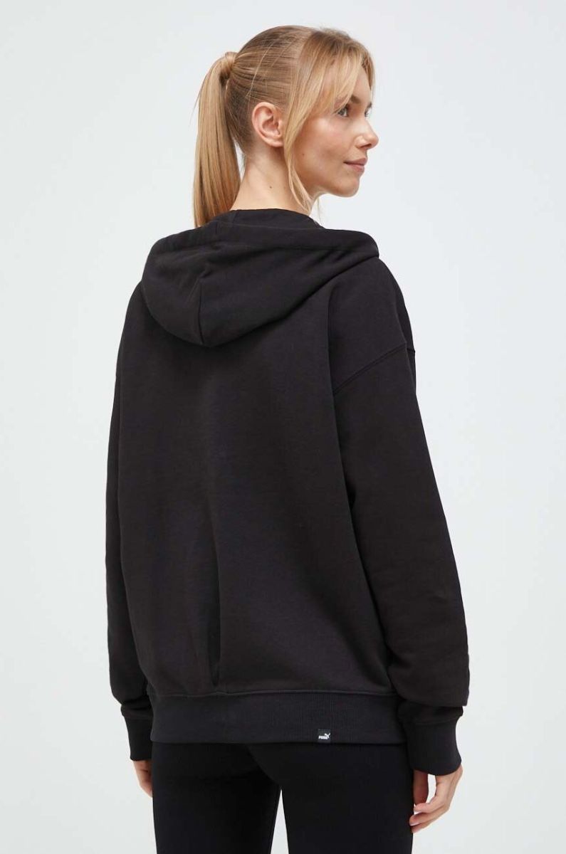 Бавовняна кофта Puma жіноча колір чорний з капюшоном однотонна (3441509)